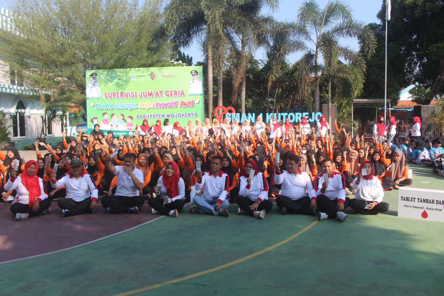 Suplemen tambah darah penting untuk kesehatan terutama bagi perempuan karena perempuan mengalami menstruasi tiap bulannya sehingga asupan penambah darah sangat diperlukan. Maka pemerintah ikut serta dalam mewujudkan masyarakat yang sehat dengan mengadakan kegiatan pemberian vitamin tambah dari bagi perempuan terutama di kalangan pelajar. kegiatan ini diselenggarakan oleh Puskesmas Kutorejo bekerjra sama dengan SMAN 1 Kutorejo dan Pemberintah Kabupaten Mojokerto (dalam hal ini dinas kesehatan Kabupaten Mojokerto). pembagian Vitamin Tambah Darah tersebut dihadiri oleh Bupati Mojokerto Ibu dr. Ikfina Fahmawati, M.Si. Dalam Kegiatan ini Ibu Ikfina memberikan Vitamin Tambah Darah Kepada siswi SMAN 1 Kutorejo secara simbolis diserahkan kepada Kepala SMAN 1 Kutorejo Drs. Ahmad Setyawan, M.M.Pd.