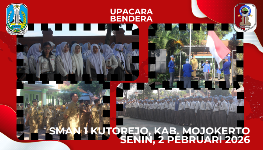 MOJOKERTO, Senin, 2 Februari 2026. Dalam rangka memulai kegiatan mingguan di SMAN 1 Kutorejo Kab. Mojokerto diadakan upacara pengibaran bendera merah putih di halaman sekolah. Upacara diikuti oleh GTK dan siswa dengan penuh khidmat. Petugas upacara oleh anak-anak Paskibraka dan anak Paduan Suara. Upacara diawali dengan pengibaran bendera merah putih sebagai lambang negara Republik Indonesia, kemudian mengheningkan cipta untuk mengenang jasa para pahlawan bangsa. Selanjutnya pembacaan Teks Pancasila dipimpin oleh pembina upacara dan diikuti oleh seluruh peserta upacara. Selanjutnya pembacaan pembukaan Undang-Undang Dasar Negara Republik Indonesia Tahun 1945.